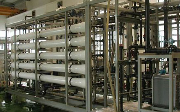 EDI設備系統(tǒng)是利用混和離子交換樹脂吸附給水中的陰陽離子,被吸附的離子在直流電壓的作用下,分別透過陰陽離子交換膜而被除去的過程。電滲析器的一對電極之間,通常由陰膜,陽膜和隔板多組交替排列,構(gòu)成濃室和淡室(即陽離子可透過陽膜,陰離子可透過陰膜).淡室水中陽離子向負極遷移透過陽膜,被濃室中的陰膜截留;水中陰離子向正極方向遷移陰膜,被濃室中的陽膜截留,這樣通過淡室的水中離子數(shù)逐漸減少,成為淡水,而濃室的水中,由于濃室的陰陽離子不斷涌進,電介質(zhì)離子濃度不斷升高,而成為濃水,從而達到淡化,提純,濃縮或精制的目的。這一過程離子交換樹脂是電連續(xù)再生的,因此不需要使用酸和堿對之再生。EDI超純水設備的這一新技術(shù)可以替代傳統(tǒng)的離子交換裝置,生產(chǎn)出高達18M-CM的超純水。