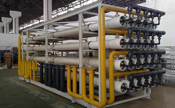 EDI電去離子裝置將離子交換樹脂充夾在陰/陽離子交換膜之間形成EDI單元。EDI組件中將一定數(shù)量的EDI單元間用網(wǎng)狀物隔開,形成濃水室。又在單元組r 兩端設置陰/陽電極。在直流電的推動下,通過淡水室水流中的陰陽離子分別穿過陰陽離子交換膜進入到濃水室而在淡水室中去除。而通過濃水室的水將離子帶出系統(tǒng),成為濃水。
