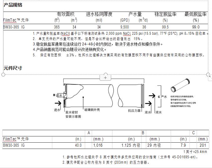 適用于:反滲透工廠生產(chǎn)經(jīng)理和運(yùn)行人員,面對(duì)具有挑戰(zhàn)性的 水源時(shí),尋求具有高度一致性,高性能、長(zhǎng)壽命的產(chǎn)品。它保 持了與 BW30-365 膜元件相同的流量和脫鹽性能,只不過(guò)它不具 備 ANSI 標(biāo)準(zhǔn) 61 認(rèn)證或是 KIWA 認(rèn)證,從而為工業(yè)級(jí)的應(yīng)用提供 了更具成本效益的選擇。