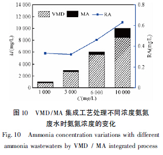 本集成工藝結合了VMD 和MA 工藝在脫氨實驗中的優點,可以回收利用氨并且將硫酸銨廢液回流繼續脫氨從而解決硫酸銨的二次污染問題。為高濃度氨氮廢水的經濟有效處理提供了一條全新技術路線。