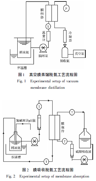 若將VMD 和MA 結合起來,有望實現高氨氮廢水的高效脫氨并解決廢吸收液的二次處置難題。本文在實驗室規模下對VMD 和MA 脫除水溶液中的氨氮進行了研究,并建立了一套全新的高效處理高氨氮廢水的集成膜工藝體系。