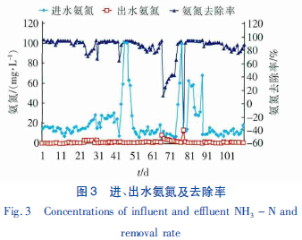 本工程對(duì)氨氮的去除情況如圖3 所示。