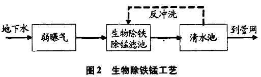(4)生物除錳法 人們很早就認識到微生物對鐵錳的氧化作用,但是把微生物引入到地下水除錳領域的歷史并不長。生物法除鐵、除錳作為一種新的工藝也開始在一些國家研究推廣,如法國、德國、保加利亞等國家都有應用,均取得良好效果。
