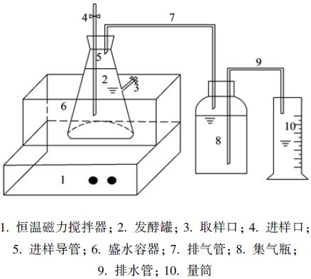 將600 mL果膠廢水添加至小發(fā)酵罐(1?000 mL),接種上述馴化污泥,發(fā)酵罐中t=35℃、 pH為7.0左右、 VSS為10 g ·L-1. 接種后反應(yīng)器用氮?dú)獯? min,以驅(qū)除發(fā)酵罐中的空氣,然后置于恒溫水浴中培養(yǎng).