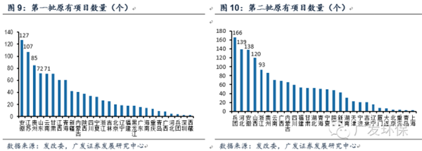 整體來看,發改委批項目數保留率75.6%,剔除退庫項目后比較終投資額1.44萬億,投資額保留率73.1%;第二批項目數保留率65.2%,剔除退庫項目后比較終投資額1.53萬億,投資額保留率67.7%。