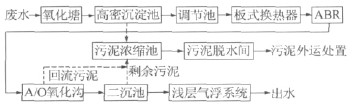 制糖企業里流洗工段的廢水為反復循環使用的洗甜菜廢水,水中富含泥砂等懸浮物質,SS 質量濃度一般在10~60 g/L 左右,還有少量的生活污水等,氨氮質量濃度達50 mg/L。由于懸浮物過高,導致COD、BOD 也很高。此外這類污水還具有水質水量不穩定、變化大等特點,如果不經過處理直接排放,將造成嚴重的環境污染〔1〕。然而常規的方法處理這種廢水難以達到排放要求〔2〕,特別是氨氮難以達標。某糖廠針對廢水的排放規律和特性,采用氧化塘+高密沉淀+厭氧折流板反應器(ABR)+A/O 氧化溝+氣浮工藝處理其產生的工業廢水。該工藝自建成運行后一直穩定達標。