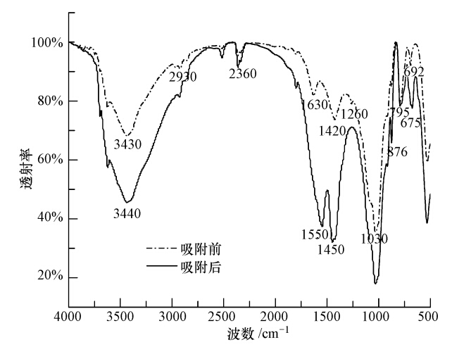 圖 6 李氏禾濕地基質吸附Cr(Ⅵ)前后FTIR譜圖