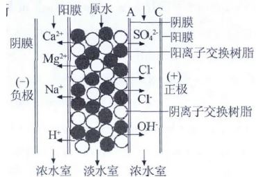 由圖 2 可見,工作過程一般分為三個(gè)步驟: (1)淡水室中的離子交換樹脂對(duì)水中電解質(zhì)離子的交換作用,去除水中的離子;(2)在外電場(chǎng)作用下,水中電解質(zhì)沿樹脂顆粒構(gòu)成的導(dǎo)電傳遞路徑遷移到膜表面并透過離子交換膜進(jìn)入濃水室;(3)樹脂、膜與水相接觸的擴(kuò)散層中的極化作用使水解離為H+和OH-,除部分參與負(fù)載電流外大多數(shù)對(duì)樹脂起再生作用。離子交換、離子遷移、電再生相伴發(fā)生、相互促進(jìn),實(shí)現(xiàn)了連續(xù)去除離子的過程〔3〕。
