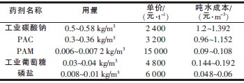 從表3 可以看出,處理1 t 廢水所需的藥劑費用為2.442~2.904 元。