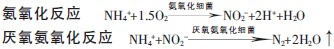 ENRT 是一種高效脫氮技術,即短程硝化厭氧氨氧化,其工藝原理是在硝化階段通過氨氧化細菌將部分氨氮氧化成亞硝酸鹽氮〔2-3〕,剩余的氨氮和已轉化的亞硝酸鹽氮在厭氧環(huán)境中由厭氧氨氧化細菌直接生成氮氣〔4〕。
