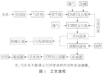 (3)ENRT 工藝出水經生物炭池、砂濾罐、活性炭罐、精濾罐進一步處理后,可滿足廠區(qū)回用水要求。