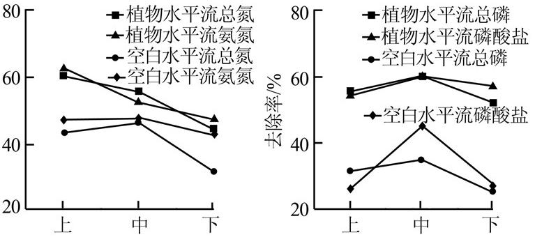 2.2 基質(zhì)級配和植物對水平流人工濕地空間內(nèi)部去除營養(yǎng)物的影響作用