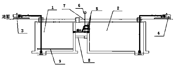 1.一種污水污泥濃縮池,包括污水池(1)和污泥池(2),其特征在于:所述污水池(1)和污泥池(2)之間設置有透明管段(8),所述污泥池(2)一側壁上端設置有多個閥門(5),所述閥門通過管線與污水池(1)連接,所述污水池(1)上方地面上設置有污水泵(3),所述污泥池(2)上方地面上設置有污泥泵(4)。