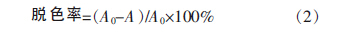 甲基橙濃度采用分光光度法,在465 nm 波長下測定,脫色率按式(2)進行計算: