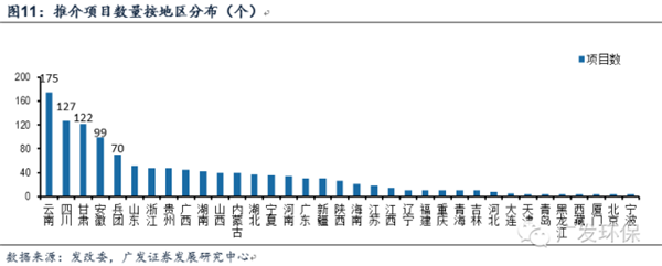 從推介項目數(shù)量的地區(qū)分布來看,批項目中,安徽、江蘇、貴州、山東、云南居前五位,分別有127、107、85、72、71個,合計占入庫項目總數(shù)的44.3%;第二批項目中,兵團(tuán)、河北、安徽、山西、浙江居前五位,分別有166、139、138、120、93個,合計占入庫項目總數(shù)的44.09%。第三批項目中,云南、四川、甘肅、安徽、兵團(tuán)居前五位,分別為175、127、122、99、70個,合計占入庫項目總數(shù)的48.09%。