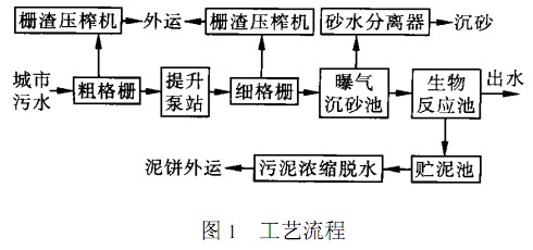 污水采用具有除磷脫氮功能的循環式活性污泥法(CASS)進行處理,污泥經機械濃縮、脫水后外運,整個污水廠的工藝流程見圖1。