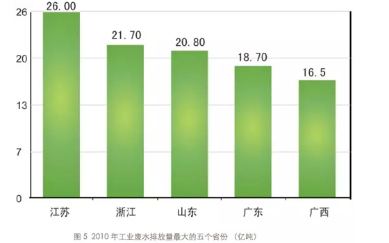 如圖1所示,造紙及紙制品業,化學原料及化學制品制造業,紡織業,農副食品加工業,電力、熱力的生產和供應業這五大行業占據了全國廢水排放總量的58%。