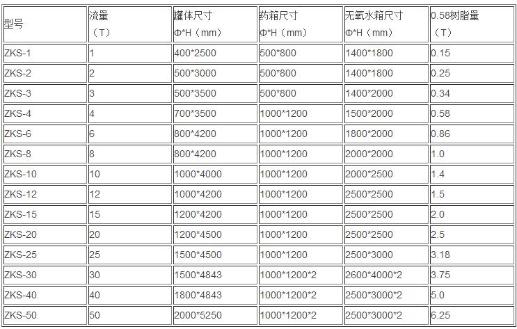 第六,樹脂除氧器規(guī)格型號(hào)