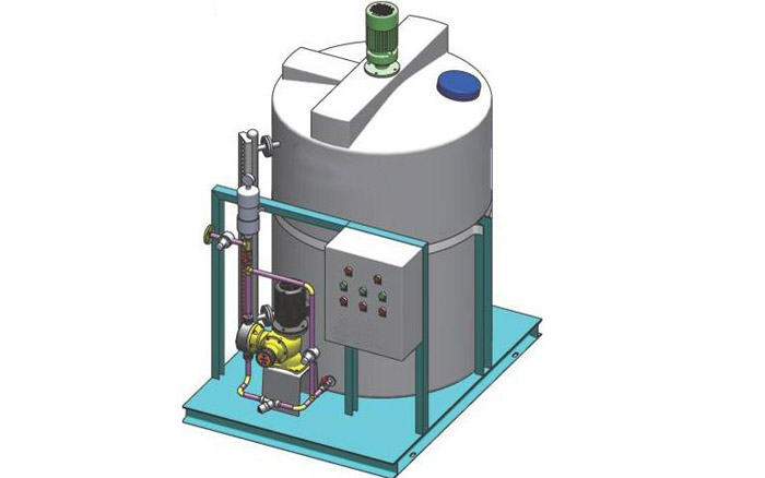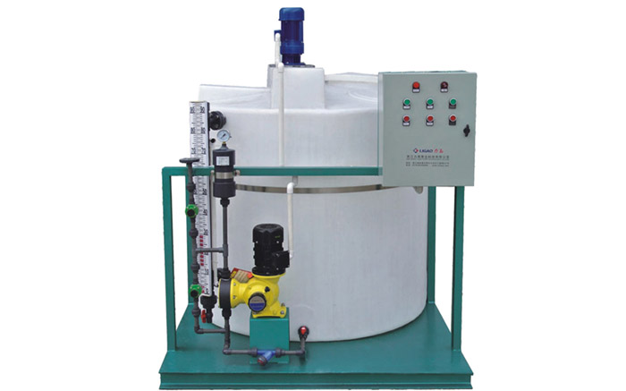 加藥裝置根據(jù)所需藥劑濃度,在攪拌箱內(nèi)配置,經(jīng)攪拌器攪拌均勻后投入溶液箱、用計(jì)量泵向投藥點(diǎn)或指定系統(tǒng)中輸送所配制的溶液。成套加藥裝置具有結(jié)構(gòu)緊湊、安全簡(jiǎn)單、操作使用簡(jiǎn)便等特點(diǎn)。加藥裝置還可根據(jù)用戶不同工藝流程的要求,進(jìn)行有針對(duì)性的設(shè)計(jì)、配置必要的部件,實(shí)現(xiàn)自動(dòng)遠(yuǎn)程控制等功能。